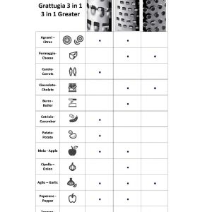 Frábært Rifjárn í Trattoria línunni frá Casa Bugatti. Þrjár hliðar gefa þér tækifæri til að rífa mismunandi hráefni á mismunandi