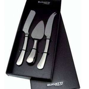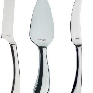 Gjafaaskja með 3 mismunandi ostahnífum úr 18/10 Ryðfríu stáli. Gorgonzola hnífur með flötu blaði, parmesan hnífur fyrir harðari osta og