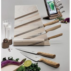 Virkilega skemmtilegur hnífastandur/blokk úr Trattoria línuni. Fáanlegur hvort sem er hvítbæsaður askur eða tóbaksbæsaður askur. Nýtist sem standur fyrir matreiðslubækur/snjalltölvur.