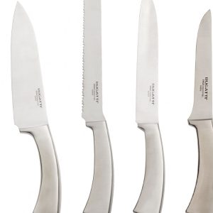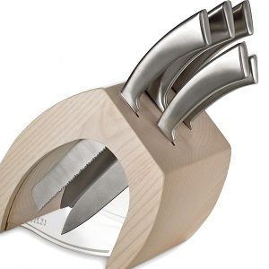 Hnífablokk með 5 hnífum úr Ergo línu Casa Bugatti. Allir hnífarnir eru úr ryðfríu stáli með háu kolefnisinnihaldi fyrir betra