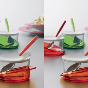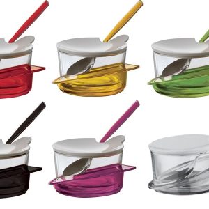 Flottar skálar undir m.a parmesan eða sykur. Koma í 7 mismunandi litum Glamour línunar, teskeið úr glamour línunni í sama