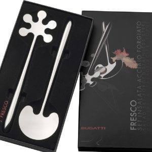 Flottar salatskeiðar úr ryðfríu stáli. Koma í fallegri gjafaöskju. Léttar og meðfærilegar. Hönnun: Stars Milano Þyngd: 660gr Stærð: 34,5cm x