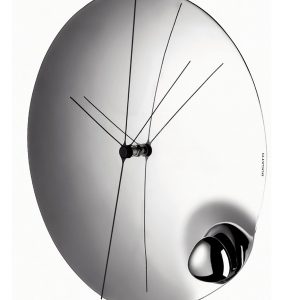 Falleg veggklukka úr Trattoria línunni frá Casa Bugatti. Vísarnir eru innfeldir um klukkuna miðja. Kemur í hvítbæsuðum eða tóbaksbæsuðum aski.