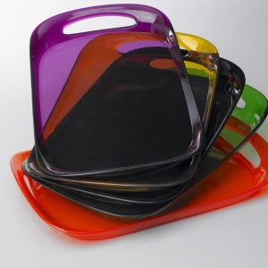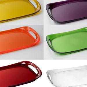 Fallegir bakkar til að bera fram á. Bakkarnir eru úr litríku Glamour línunni og fást því í 7 mismunandi litum.