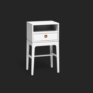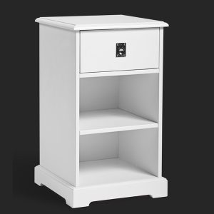 Náttborð með einni skúfu og hæðarstillanlegri hillu. Fæst hvítlakkað eða í Koksgráu. Kemur samsett. Stærð 38cm x 38cm x 65cm.