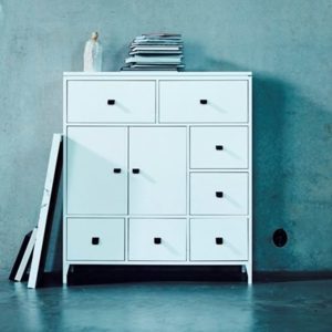 Falleg og vönduð kommóða frá sænska framleiðandanum Mavis. Breidd 100cm, Hæð 112, Dýpt 45cm. Kemur hvítlökkuð eða spónlögð í mismunandi