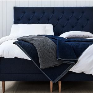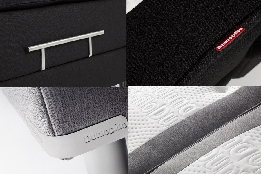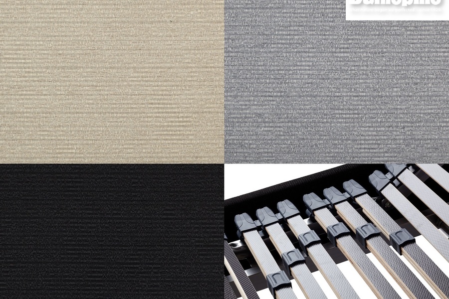 Dunlopillo heilsurúmin koma í 3.mismunandi litum á áklæði- mikið úrval af fótum – staðlaðar fætur fylgja með rúmi (eins og mynd) en hægt að uppfæra sig í aðrar gerðir. – Gaflar fáanlegir í sömu áklæðum