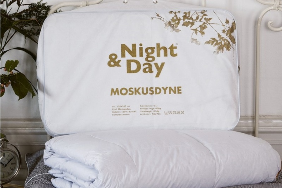 Vönduð og hlý en létt sæng frá þekkta Danska framleiðandanum Night and Day. Sængin er fyllt með 600gr af „moskus“dún sem tekinn er í fjallshlíðum svo dúnninn verður þéttari, betri og hlýrri. Oeko Tex 100 Class 1 Vottun fyrir eiturefnalausum textíl