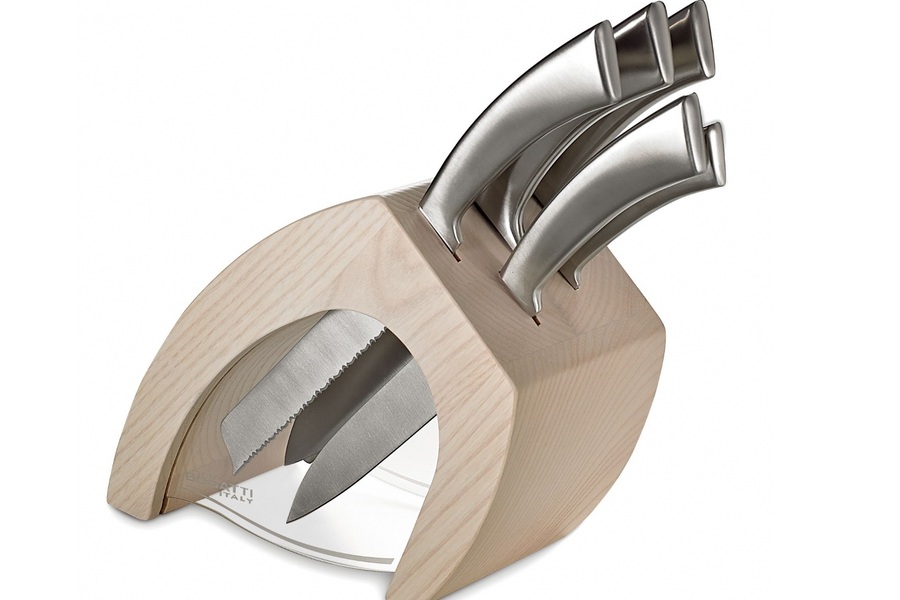 Hnífablokk með 5 hnífum úr Ergo línu Casa Bugatti. Allir hnífarnir eru úr ryðfríu stáli með háu kolefnisinnihaldi fyrir betra bit. Hnífarnir eru með holum handföngum svo massamiðja þeirra liggji sem næst mótum handfangs og blaðs fyrir gott jafnvægi. Hægt er að kaupa hnífana staka eða í setti með hnífablokk úr Trattoria línunni eða Virgola.