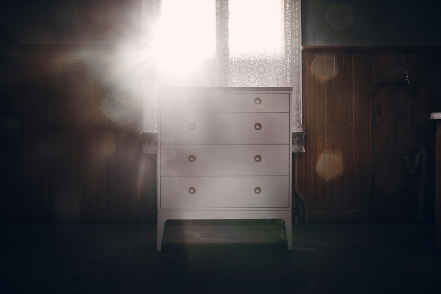Snyrtileg og vönduð kommóða með 4 skúffum. Fæst í spónlagðri eik eða ljósgrá-lökkuð. Hægt að sérpanta með topplötu úr Ítölskum marmara eða sænskum Lime-stein. Breidd 86cm / Dýpt 40cm / Hæð 102cm. Kemur Samsett