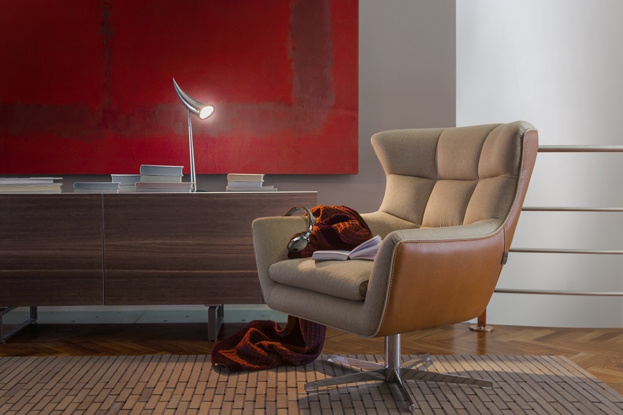Fallegur stóll frá Calia Italia. Fæst bæði á föstum fótum eða snúningsfæti. Niðurfellanlegt bak