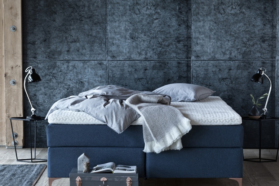 Lama continental er frábær lausn fyrir þá sem vilja tvær dýnur, en eitt rúm. Tvær dýnur eru settar saman í eina kápu og ofan á það 60mm Visco eða Latex yfirdýna. Lama Continental sést hér í Turskish bláu með kopar fætur. Ótal margir möguleikar í lita, fóta og dýnuvali. Hafðu samband við verslun fyrir frekari upplýsingar.