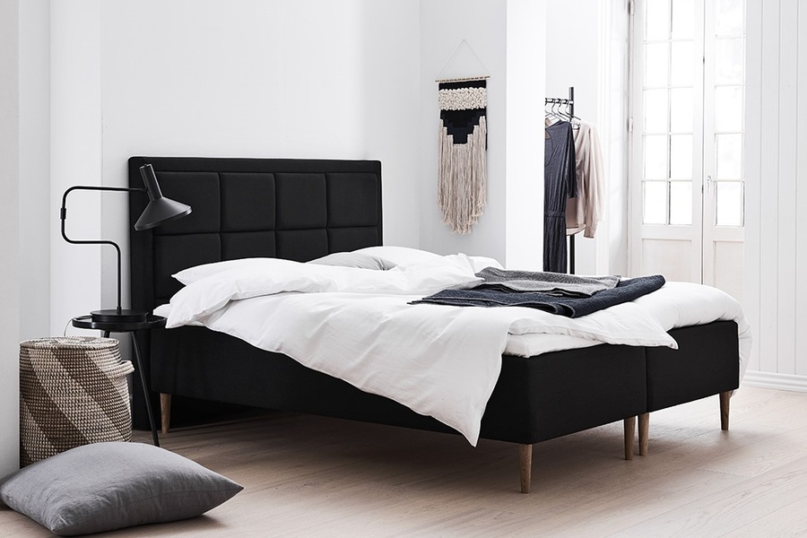 Glæsilegt rúm frá Lama í Danmörku. Val er um nokkrar gerðir af lit og áklæði ásamt mismunandi hæð og gerð af fótum. Rúmin fást bæði í mismunandi stífleikum og stærðum. Um er að ræða mjög vandaðar dýnur með sjálfstæðri fjöðrun í botni og svo svæðaskiptri „há“pokafjöðrun fyrir réttan sjálfstæðan og djúpan stuðning þar sem á honum er þörf. Flex+ í efsta lagi dýnu fyrir enn frekari öndun Meðfylgjandi er svo yfirdýna með vali um 65mm Ergo+ 50mm Latex eða 50mm Visco. Lama hefur framleitt rúm í Danmörku síðan 1939 og hefur ávallt lagt mikinn metnað í gæði og gott efnisval.