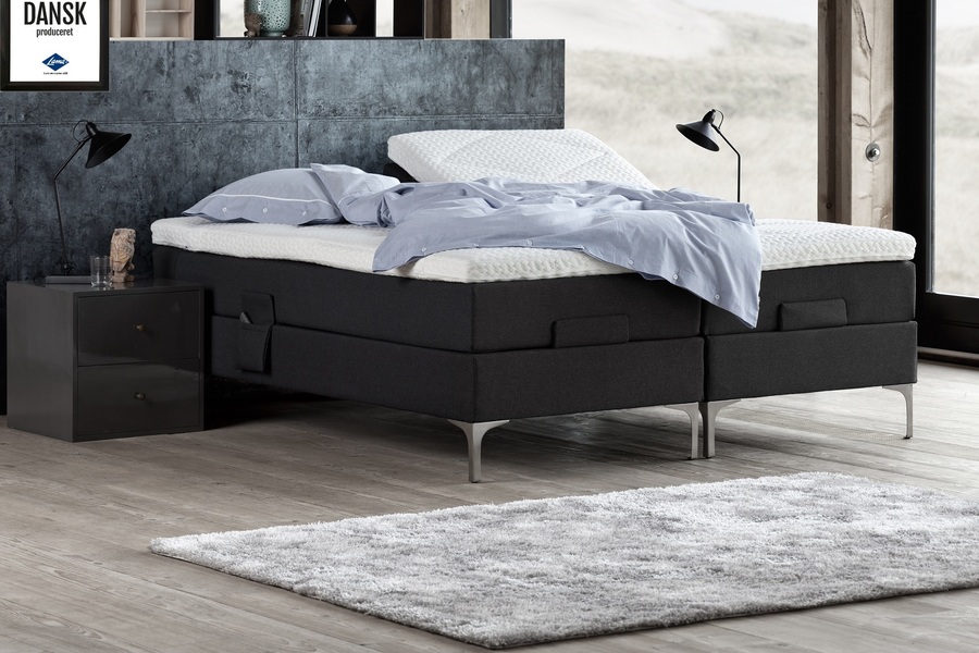Rúmunum fylgir snyrtilegur vasi til að geyma fjarstýringuna í – Val er um nokkrar gerðir áklæða og lita á rúmið – Fætur fylgja með, val um mismunandi gerðir fóta og hæð á fótum – Falleg Dönsk hönnun og framleiðsla í Danmörku síðan 1939