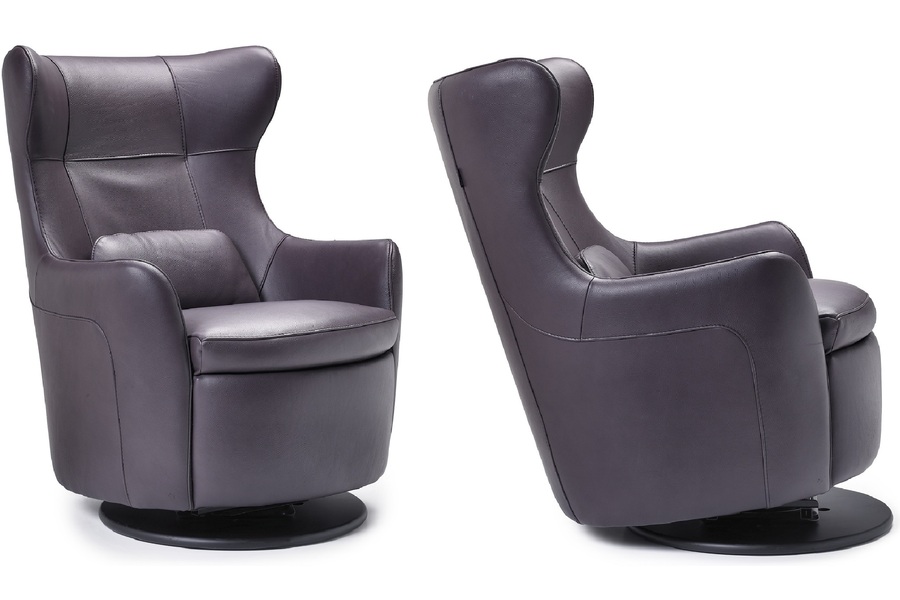 Skemtilegir stólar alklæddir leði. Koma á snúningsplatta með ruggu