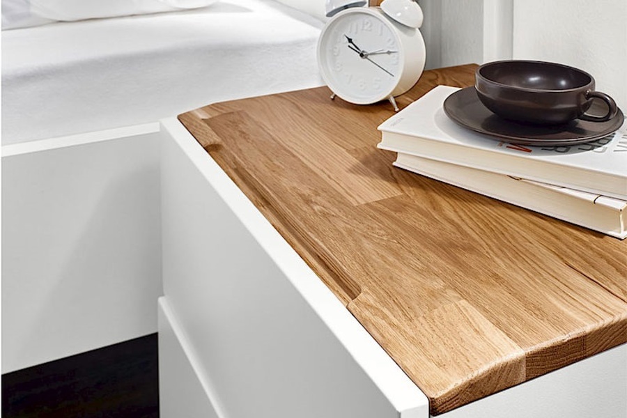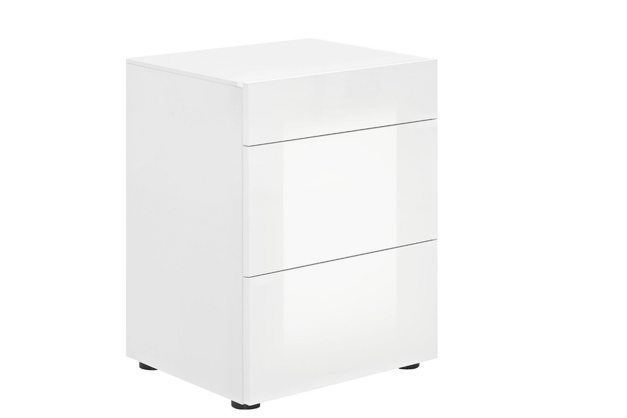 Samsett Náttborð frá Arte-M í Þýskalandi í hvítu háglans. Náttborðin eru fáanleg í mörgum litaútfærslum og viðargerðum. Efsta skúffa með skelluvörn og neðri tvær með „push-open“ skúffubrautum