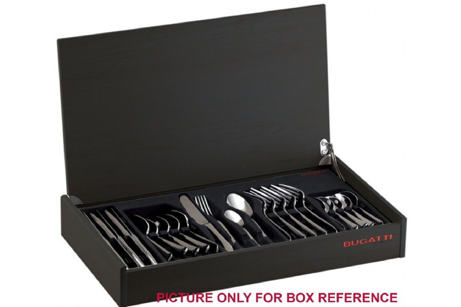 Hnífaparasett frá Bugatti, kemur í fallegum Wengikassa. Hönnun eftir Virgilio Bugatti. Fáanlegt í mörgum útfærslum og stærðum af settum t.d:
