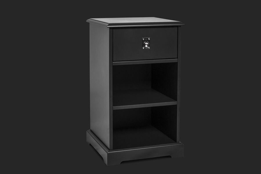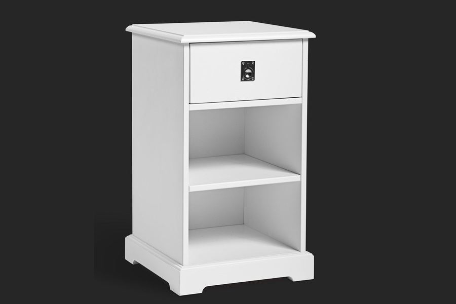 Náttborð með einni skúfu og hæðarstillanlegri hillu. Fæst hvítlakkað eða í Koksgráu. Kemur samsett. Stærð 38cm x 38cm x 65cm. Fæst einnig upphengjanlegt.