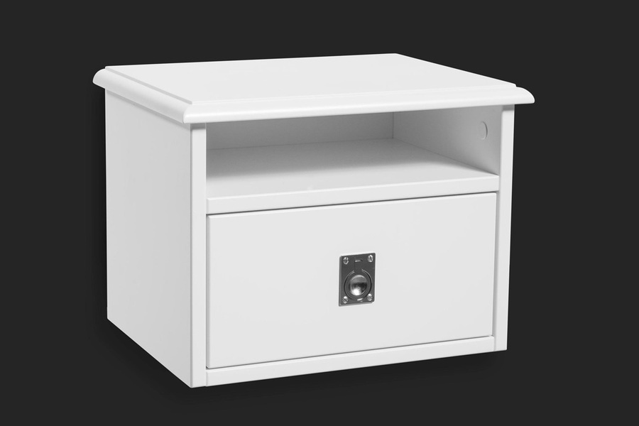 Nett og fallegt upphengjanlegt náttborð. Hvítlakkað eða koksgrátt, ein skúffa og nett hilla. Kemur samsett. Stærð B.38cm x D.28cm x H.28cm Fæst einnig sem venjulegt náttborð