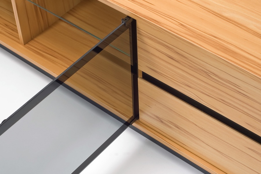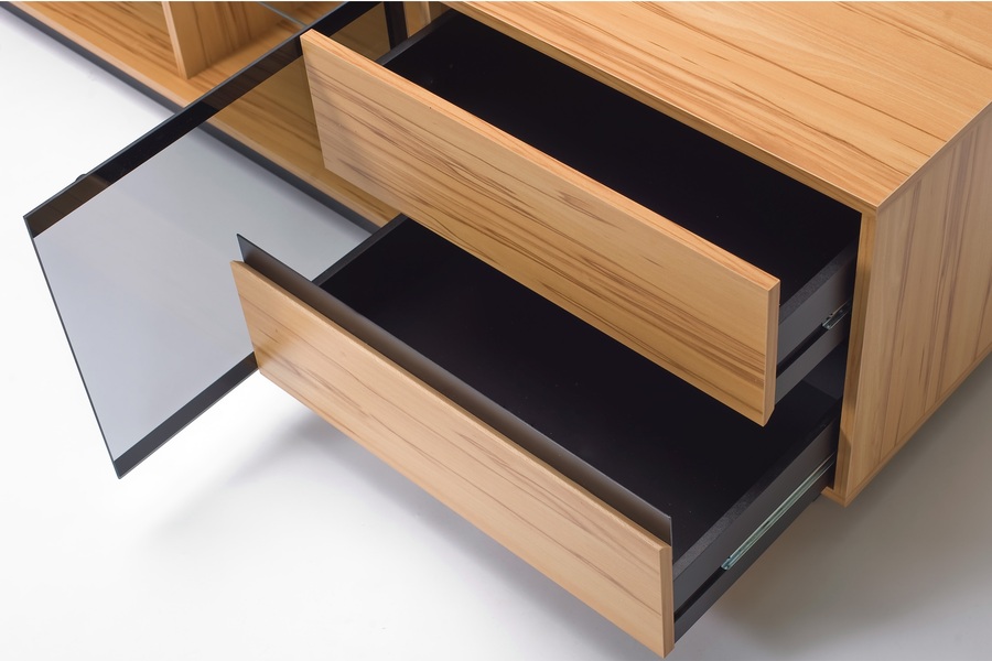 Flottur þýskur sjónvarpsskápur úr beiki. Stærð 188cm. Glerhurðar og skúffur. LED lýsing fylgir.