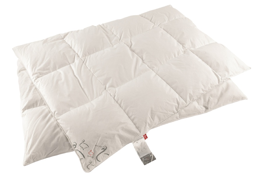 90% 1.flokks evrópskur andadúnn + 10% 1.flokk smáfiður. Fyllingin er 170gr/m² eða samtals 470gr. Áklæði er úr 100% bómull. Sængurnar eru framleiddar í Danmörku eftir ströngustu stöðlum, eru öko-tex 100 vottaðar, Nomite vottaðar og með Downafresh vottun að auki. Sængurnar henta því þeim sem eru með með ofnæmi fyrir rykmaurum